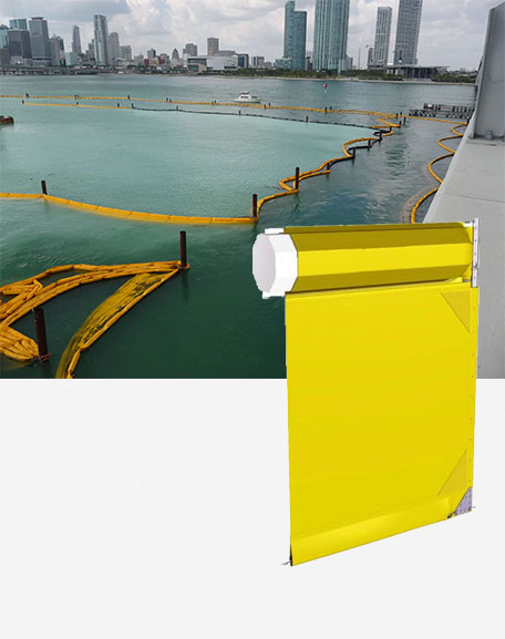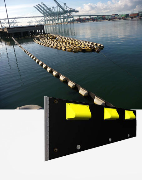 Los flotadores de la barrera son celdas rellenas de espuma, moldeadas con polietileno de uso rudo de 1/8 de pulgada con inhibidores de rayos ultravioleta y de crecimiento de vida marina. Los flotadores proveen alta visibilidad, alta resistencia al impacto, excedente en la relacion de flotacion contra peso, adaptación al oleaje y estabilidad contra el viento. El lastre es provisto por piezas de plomo cocidas a la tela. En tamaños disponibles de 24 y 36 pulgadas de altura.